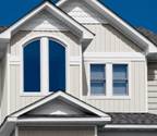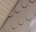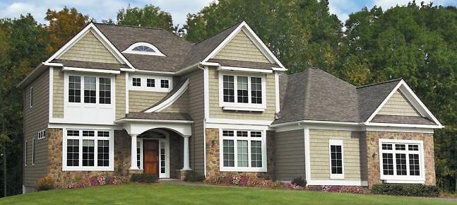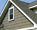 There are many decorative options of siding that can be used to really dress up your home and show your individual character. Shakes, scallops, vertical siding, or simply angling the same vinyl siding used on the rest of the house, are all popular ways to add curb appeal when residing. All of the decorative vinyl siding styles are available in a number of colors to complement your new siding. Here are a couple of pictures showing some of the different combinations available: